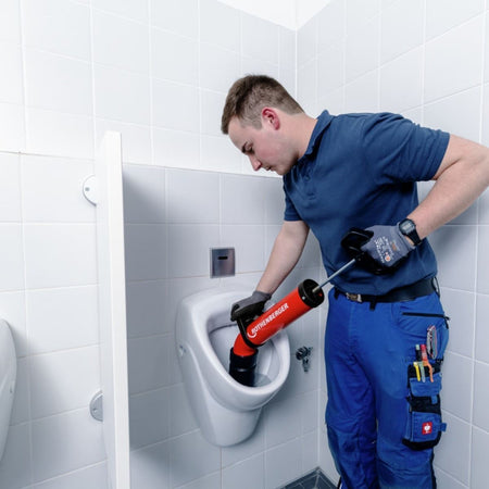 The Rothenberger Ropump Super Plus (072070X) is an effective entry-level tool for quickly clearing simple blockages in washbasins, sinks, tubs, and toilets. It operates using the suction/pressure principle, delivering high power for efficient removal of clogs. Built with a durable single-cast main body, it features an adjustable handle for comfortable handling. The pump includes a short adapter for bathroom sinks, showers, and baths, and a long adapter for toilets, making it versatile for various applications. Ideal for installers, janitors, and drain cleaners, it’s a practical solution for basic plumbing needs.