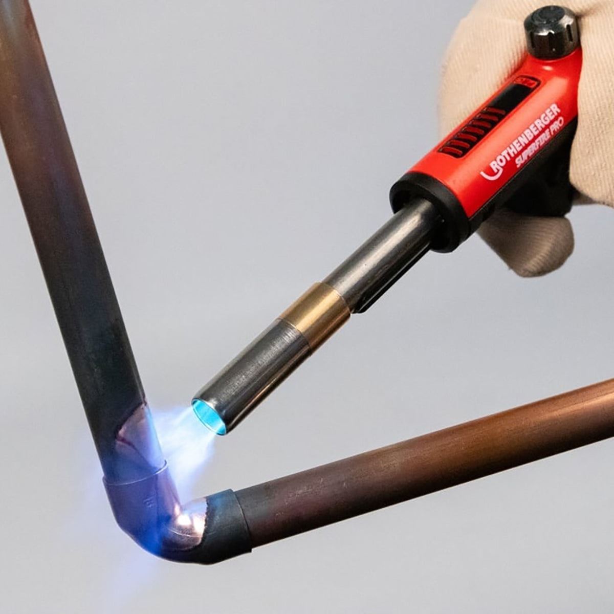Cool Tip Burner: Stays cool to the touch, reducing the risk of accidents and injuries. Included as standard on the SUPERFIRE PRO. Cyclone Flame: Delivers an intense, efficient short flame that wraps around the pipe, ensuring even heat distribution. Trigger Lock: Enables a continuous flame; lock the trigger for a continuous flame and flexible handling. Trigger ON/OFF: Preservation of gas. Releasing the trigger will shut off gas flow. Piezo Ignition: One-click automatic ignition — no striker required. 8 Interchangeable Tips: One torch for multiple applications. Twist 'N' Lock technology enables quick and easy burner changes. Flame Adjustment: Allows precise control of flame intensity to match specific needs. Cylinder Valve Protection: A broad torch body design prevents the cylinder from detaching, minimizing the risk of damage or injury.