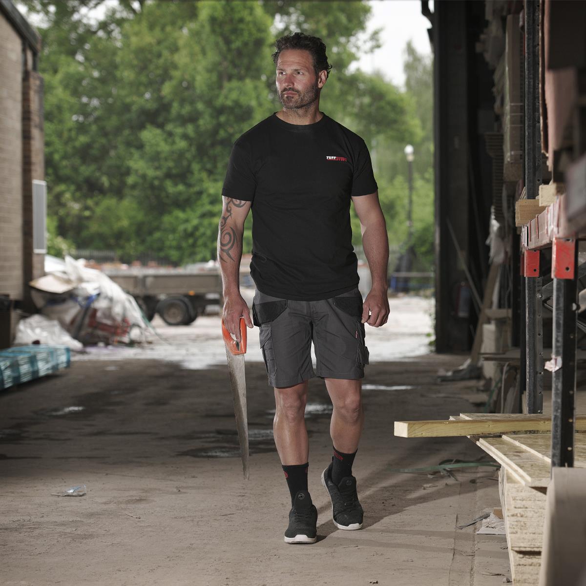 The TuffStuff 155 Logo T-Shirt is a classic, everyday work tee made from 180 gsm 100% cotton for natural comfort and breathability. It features a flexible stretch fabric that allows easy movement during daily tasks. A classic crew neck and regular fit make it suitable for layering or solo wear. The iconic TuffStuff logo adds a simple, professional look.